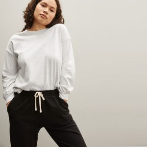 Inspired by our favorite vintage skater tees. the Organic Cotton Long-Sleeve Tee features a clean crew neckline. gathered cuff detailing. and a boxy fit throughout. Oh. and it’s made of lightweight organic cotton. which makes it super-breathable and soft to the touch.