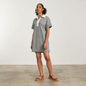 The Organic Cotton Polo Dress features a relaxed point collar. an open plunge neckline. blouson sleeves. side slits. an above-the-knee length. and an easy. relaxed fit. Plus. it’s made of 100% organic cotton for softness and breathability.