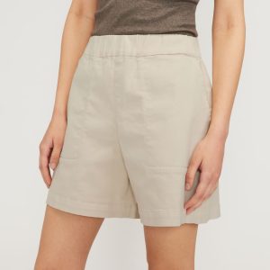 Your new summer love. The Organic Pull-On Short features a high-waist. A-line silhouette. with easy-on elasticated tie-waist. Slanted front pockets with stitching details and back patch pockets complete the look. Served up in your favorite organic cotton twill fabric with a touch of elastane for some stretch. these shorts keep you cool and comfy all season round. Organic cotton uses crop rotation. cover crops. and organic fertilizers instead of toxic chemical fertilizers or pesticides—which means cleaner water. lower water usage. lower pesticide use. healthier soil. and a safer working environment for cotton farmers. compared to conventional cotton.