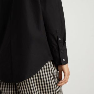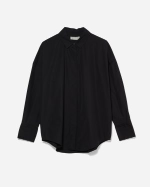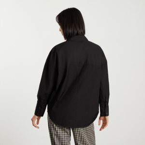 The Oversized Poplin Shirt adds instant polish to any look. A half-placket and dropped shoulders give it a refined feel that goes easily with denim. Cotton poplin is densely woven. making it both durable and breathable. also giving it a crisp. cool feel.