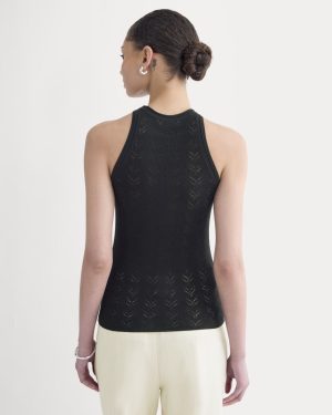 The Pointelle Racerback Tank in Ultrafine Merino | Black