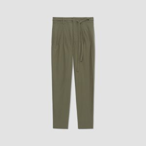 The Poplin Pleated Taper Pant features a tapered leg silhouette. with front pleats and a skinny self-tie belt. Made with 100% cotton. it has slanted front pockets and welt back pockets with button closures. Dress it up with heels or down with sneakers. Cotton poplin is densely woven. making it both durable and breathable. also giving it a crisp. cool feel.