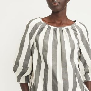 Top off your look with The Poplin Scoop-Neck Top. Featuring a gathered open crew neck and 3/4 length balloon sleeves. it has a relaxed fit that’s easy to tuck in or wear loose. It’s made with 100% breezy cotton. Cotton poplin is densely woven. making it both durable and breathable. also giving it a crisp. cool feel.