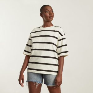 Made of 100% cotton. the Premium-Weight Relaxed Tee features dropped shoulders. a classic crewneck. longer sleeves. and an intentionally boxy. oversized fit. Size down for a less boxy fit. The best part? It’s made of organic cotton. which is better for the planet and you. so you can look good and feel good.