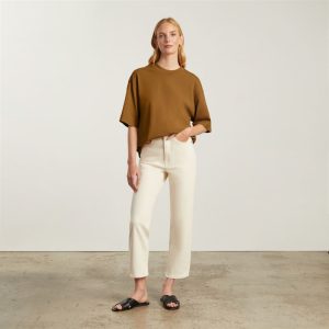 Made of 100% cotton. the Premium-Weight Relaxed Tee features dropped shoulders. a classic crewneck. longer sleeves. and an intentionally boxy. oversized fit. Size down for a less boxy fit. The best part? It’s made of organic cotton. which is better for the planet and you. so you can look good and feel good.