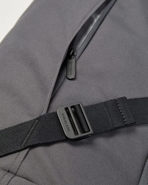 It features two padded. detachable shoulder straps. an adjustable chest buckle. shorter handles on shoulder straps. handles on each end of pack. external zipper pockets. side compartment. main compartment with zippered mesh pocket on flap underside. and four internal mesh slip pockets. Made with GRS-certified recycled polyester.