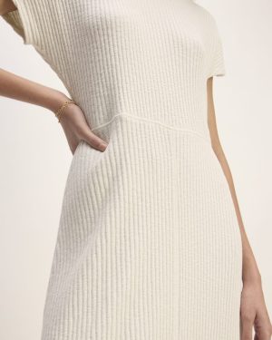 The Rib-Knit Cap-Sleeve Midi Dress | Bone