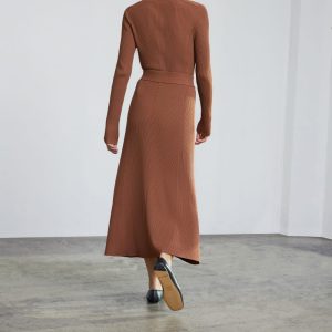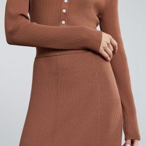 An effortless A-line ribbed skirt with a high-waist silhouette and an elasticated waist that keeps things oh-so flattering. meet The Ribbed Knit Skirt. Hitting at a midi length. it adds just the right amount of polish to any look. Made with 65% viscose and 35% nylon for all-year wear. The viscose in this garment comes from an FSC-certified supplier who has been audited and assessed as being at low risk. or has taken substantive action to eliminate known risk of sourcing rayon and viscose from ancient and endangered forests by CanopyStyle.