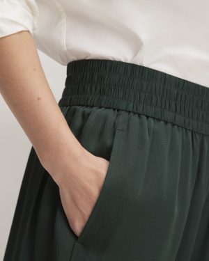 For pants that move comfortably with you throughout your day—and add a little elevated edge. meet The Satin Pull-On Pant. With a fluid and flowy wide leg silhouette. these pants feature an easy-on elasticated waist and seam front pockets. Made with our new lightweight hammered FSC-certified viscose. they have a slight sheen for a pop of polish. Perfect for work or play. The Forest Stewardship Council (FSC) certification ensures that products come from responsibly managed forests. The standards expand protection of water quality. prohibit harvest of rare old-growth forests. ban highly hazardous chemicals. and require forest managers to engage local community members as well as protect customary rights of indigenous people.