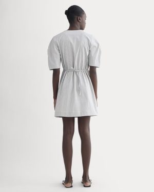 This wrap dress features voluminous balloon sleeves and an adjustable tie waist for a custom fit. Made with our softly structured organic cotton seersucker fabric to hold its shape and keep you cool. Style with square-toe sandals. sneakers. or minimalist accessories to let the dress keep the focus.