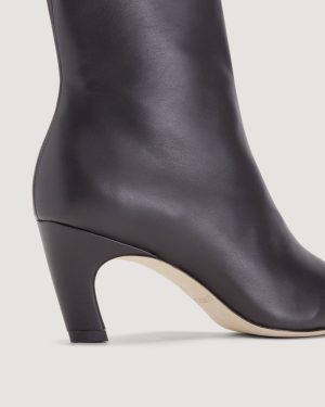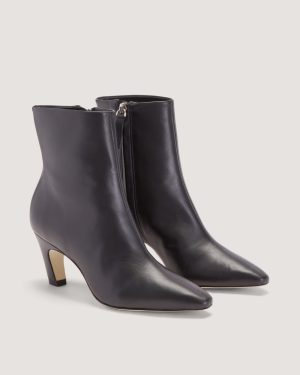 It’s the ankle boot like you’ve never seen it before. Swooping lines give this style an artistic sense of sophistication. Crafted from soft Nappa leather with a soft pointed toe and secret side zips for easy on-off. it’s the ideal balance of form and function. This boot uses leather sourced from a tannery rated Gold by the Leather Working Group (LWG)—the highest rating a tannery can receive for demonstrating best practices in environmental compliance and performance capabilities.