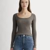 This piece features a boyish cut with a slim. feminine fit. ribbed neckline. and made of premium. mid-weight organic cotton.