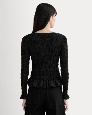 Lighter than your regular cardi. it wears more like a long-sleeve slim fit shirt. Smocked. with button closures. it features ruching along the hem to give it a dressier edge. Wear it solo buttoned up. or throw on over a tee. it’s a must for breezier days and nights.