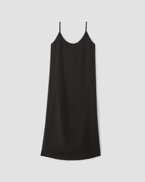 This piece features a scoop-neck. relaxed fit. midi length. slip silhouette. sleeveless. spaghetti straps. in viscose.