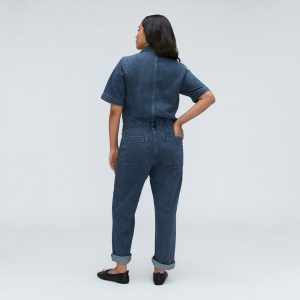 The Slouch Summer Jean Coverall is a short-sleeve. full-length denim jumpsuit with a cool utility vibe. Featuring a button-down collar. double top flap pockets plus side slash pockets. belt loops help accent the waistband. Made of 60% organic cotton and 40% TENCELTM Lyocell with REFIBRATM technology for a soft. relaxed denim look. Produced using 95% less water than conventional cotton production. TENCELTM with RefibraTM technology is a 100% bio-based man-made cellulosic (MMC) material that uses both upcycled cotton textiles (up to 33%) as well as FSC-certified. sustainably sourced wood pulp to create a partly renewed version of Tencel™ Lyocell that contributes to the circular economy.