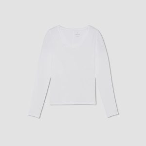 Made from a blend of stretchy jersey fabric and our Supima® cotton. this long-sleeve essential features a delicate. ballet inspired scoop neck for an elevated and sophisticated look. Grown in the United States. Supima® cotton is distinguished by its extra-long fiber length. which gives it more durability and a softer hand feel. Supima® is able to authenticate the source of its cotton across the entire supply chain. from the fiber and yarn to the fabric and finished product.