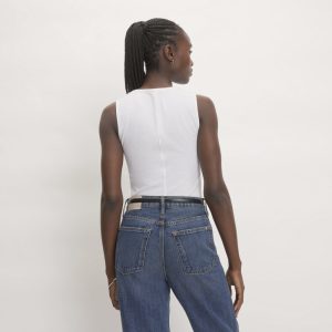 We remixed a classic crewneck tank in a stretchy Supima® cotton jersey. With a fitted silhouette. this essential tank pairs perfectly with our denim bottoms for a classically put-together outfit.