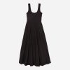 This piece features a stretch-knit jersey top. non-stretch cotton skirt. scoop neck. sleeveless. midi length. and made of a blend of 92% Supima® cotton. and 8% elastane.