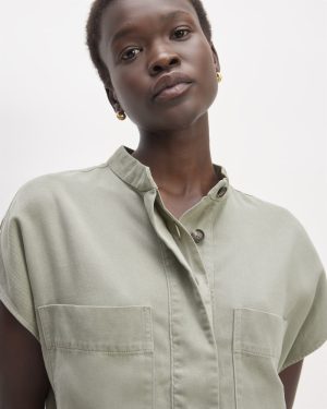 Taking your favorite Easy Workwear Dress and updating it in buttery-soft TENCEL™ Lyocell. this versatile dress will be your new all-occasions essential. Featuring patch and on-seam pockets. front placket with hidden buttons. and a stand collar. wear it to work. for downtime. or dress it up with heels for the evening. Known for its lightness and versatility. TENCEL™ Lyocell is a man-made cellulosic fiber extracted from FSC and PEFC-certified responsible wood sources. Lenzing. the producer of TENCEL™ Lyocell. has achieved the highest rating from CanopyStyle for clean chemistry use and water recycling. Based on third-party certified lifecycle assessments. TENCEL™ Lyocell is over 50% less emissions intensive. compared to conventional lyocell.