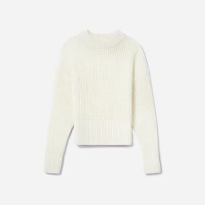 The Texture Cotton Crew features a double-layered crew neckline. dropped shoulders. batwing sleeves. thick ribbed edges. and an oversized. relaxed fit. Plus. it’s designed with a larger-ribbed knit and made of organic cotton with a cozy. voluminous feel.