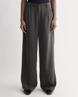 Featuring a wide leg silhouette. front pleats. mid rise. elastic waisted back. front angled pockets. and back welt pockets with button closure. Made from 100% TENCEL™ Lyocell fabric for a perfectly slouchy fit that’s satisfyingly smooth.