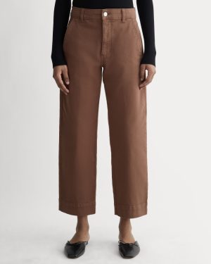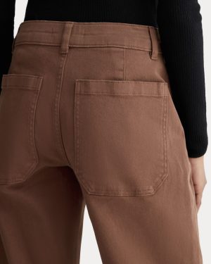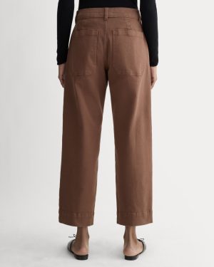This piece features a waist-nipping high-rise. relaxed. straight silhouette that hits right at the ankle. front angled pockets. and two back patch pockets in our organic cotton twill fabric.