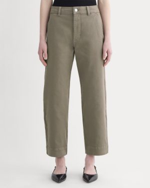 This piece features a waist-nipping high-rise. relaxed. straight silhouette that hits right at the ankle. front angled pockets. and two back patch pockets in our organic cotton twill fabric.