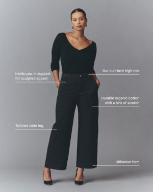 This piece features a waist-nipping high-rise. wide-leg silhouette that hits right at the ankle. front angled pockets. and two back patch pockets in our organic twill cotton fabric.