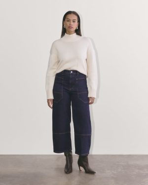 The Way-High® Gardener Cropped Jean is a wide-leg workwear-inspired jean that plays big into utilitarian style. Designed with a high-rise silhouette. it has extra-large functional pockets—both front and back. utility style stitching. a zipper fly. and a slightly cropped length. It’s made with organic cotton denim that has a heavier workwear handfeel.