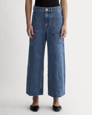 The Way-High® Gardener Cropped Jean is a wide-leg workwear-inspired jean that plays big into utilitarian style. Designed with a high-rise silhouette. it has extra-large functional pockets—both front and back. utility style stitching. a zipper fly. and a slightly cropped length. It’s made with organic cotton denim that has a heavier workwear handfeel.