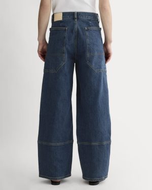 This piece features a super high rise. wide leg. full length. utility patch pockets. zipper fly. in regenerative cotton.