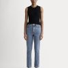 Made from low-stretch regenerative cotton. The Way-High® Slim Jean features extra room at the waist (compared to our regular Way-High® Jeans) with an updated slim. straight leg. and a longer. full-length inseam. Try sizing down for a closer fit. If you love The Cheeky Jean but need a a long length and slimmer leg. this denim’s for you.