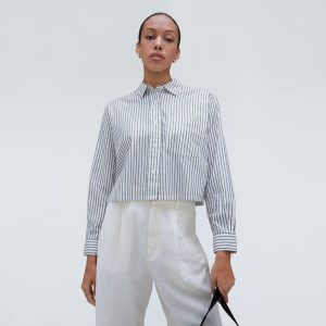 The Way-Short Shirt in Silky Cotton | Deep Blue / Canvas