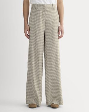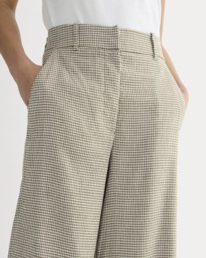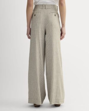 The Wide-Leg Pant in Stretch Linen | Deep Taupe Mini Gingham
