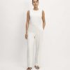 Its relaxed silhouette features a cool cross-front effect. wide elbow-length sleeves. angled front pockets. and a removable linen belt for optional added waist definition. Low-key culotte style legs hit mid calf. Made with cool. crisp linen to keep things oh-so chill. This jumpsuit is designed to fit oversized. For a more true to size fit. we recommend sizing down.